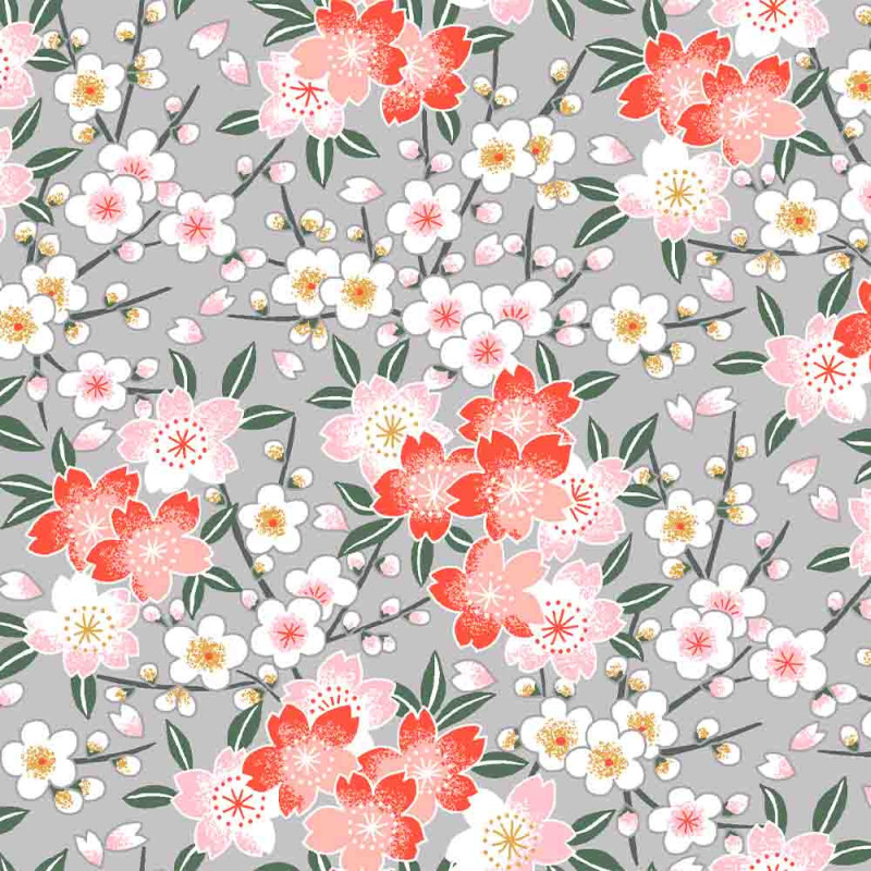 Tissu 100% coton Oeko-tex imprimé floral corail 150 cm