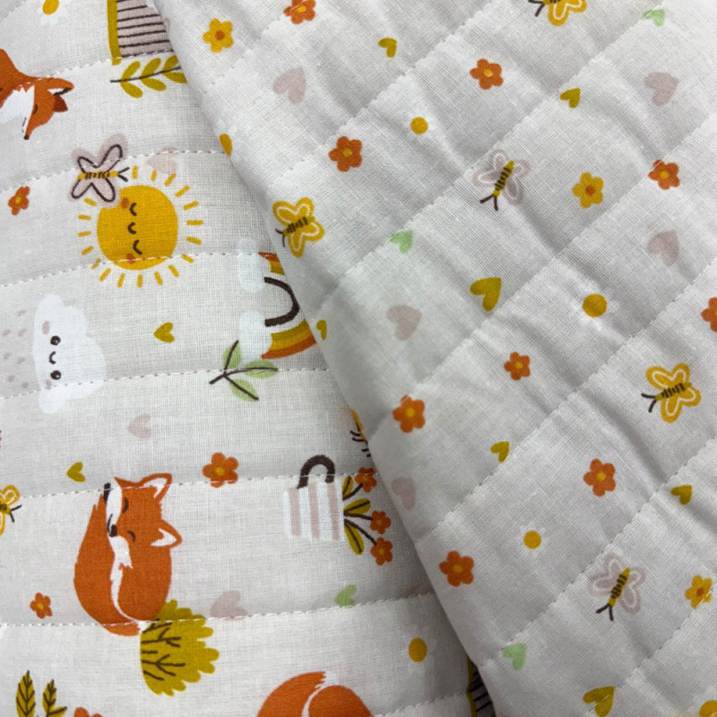 Apportez douceur et originalité à vos projets avec ce tissu matelassé imprimé renard roux sur fond blanc, d’une largeur de 138 cm. Idéal pour la confection de couvertures, vêtements ou accessoires pour enfants, ce tissu allie confort et style grâce à son matelassage léger et son motif. Parfait pour créer une ambiance chaleureuse et ludique dans une chambre d’enfant ou pour des projets couture tendance !