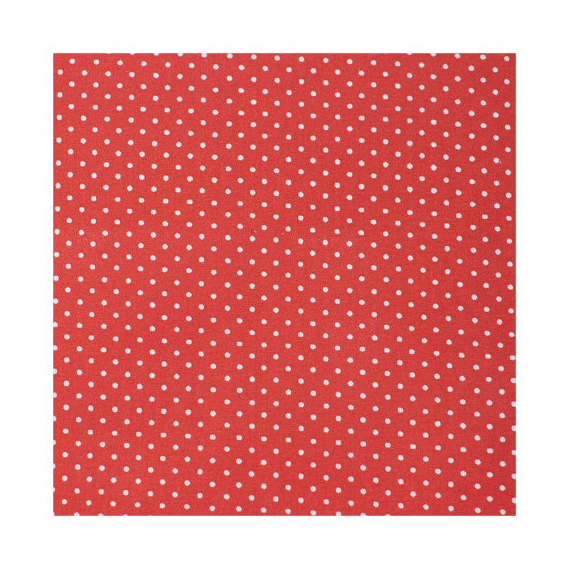 Tissu cretonne de couleur rouge aux motifs pois blancs largeur 160 cm. légèrement épais et non transparent ce tissu cretonne est idéal pour la création de linge de maison.