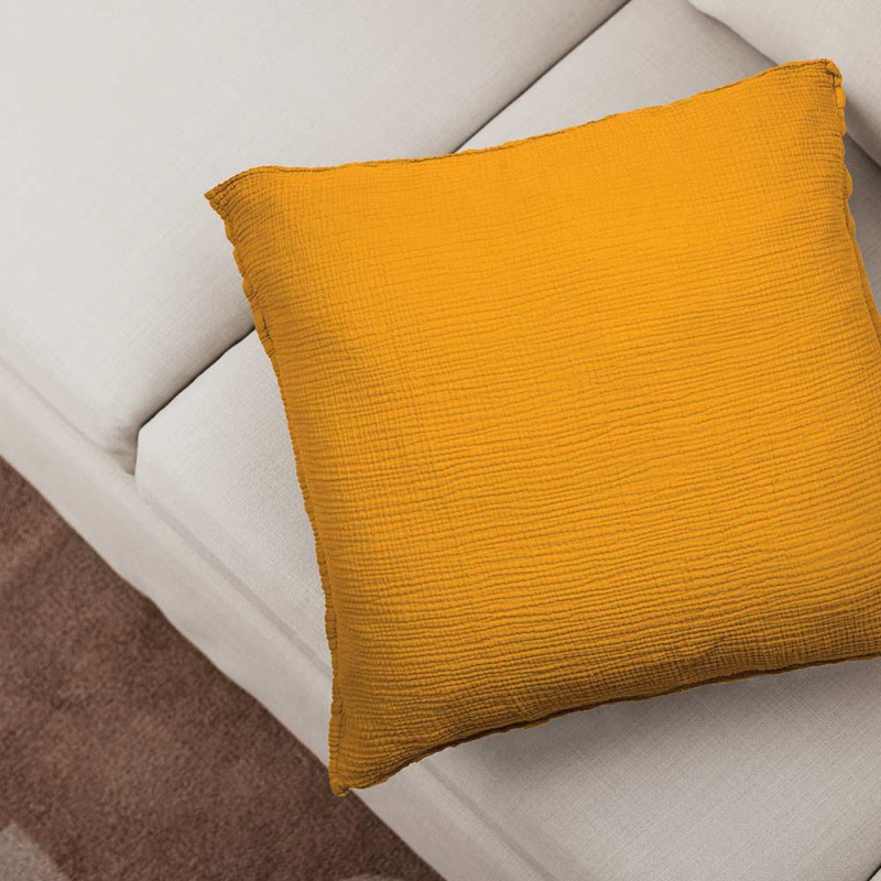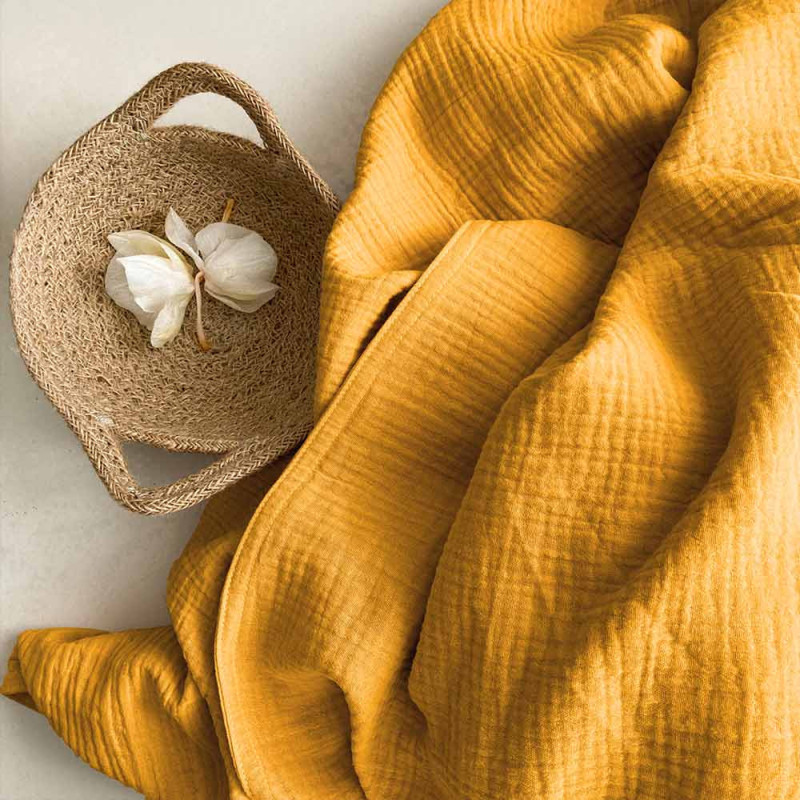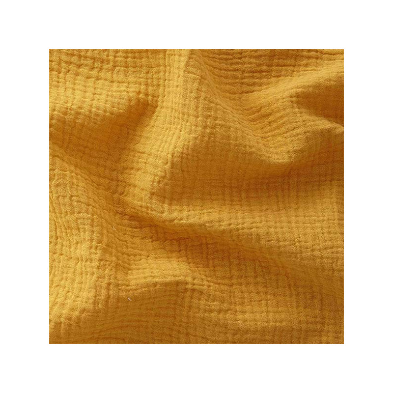 Tissu double gaze gaufrée de coton uni moutarde 130 cm