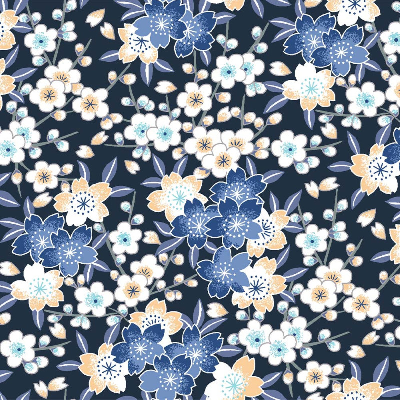 Tissu 100% coton imprimé floral bleu marine 150 cm