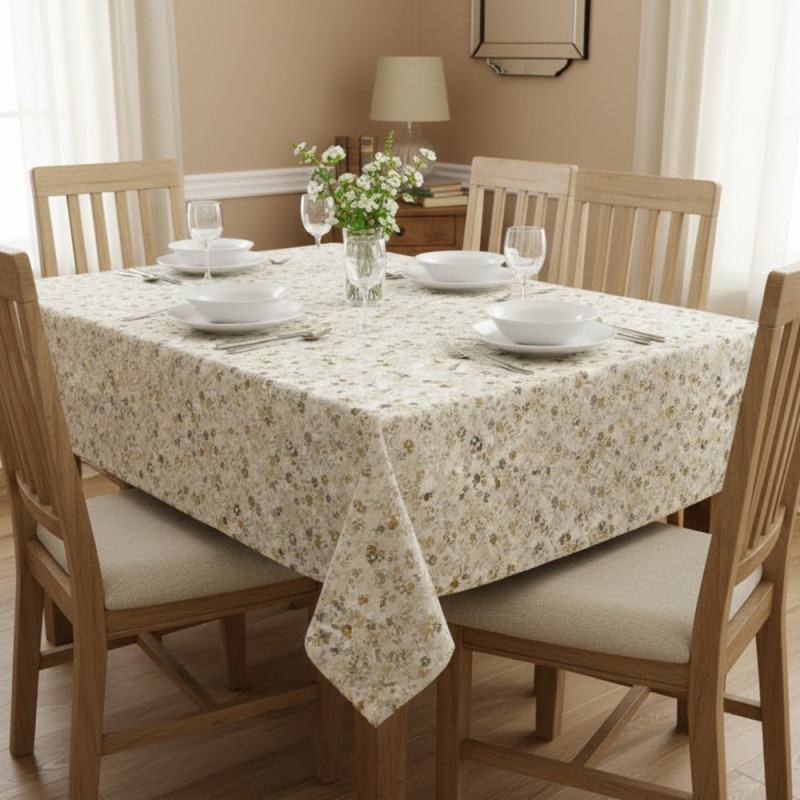 Apportez une touche élégante et naturelle à votre table avec cette nappe toile cirée beige au motif floral. Son design discret, composé de fleurs dans des tons beige, blanc, gris et marron, s’intègre facilement à tous les styles d’intérieur.