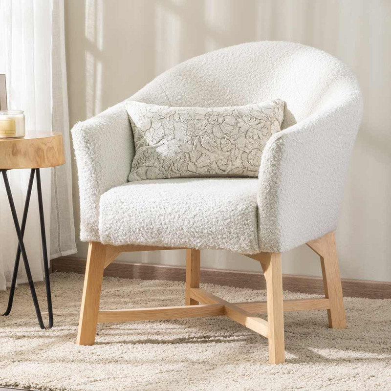 Tissu effet moumoute à bouclette écru 150 cm