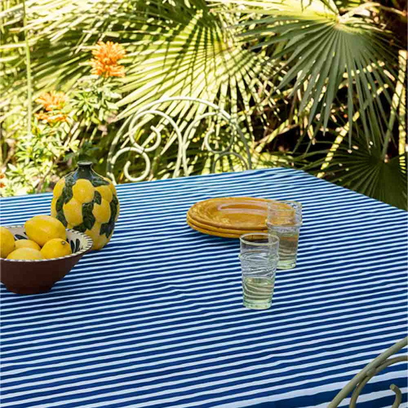Tissu déperlant imprimé à rayure bleu et blanc 150 cm