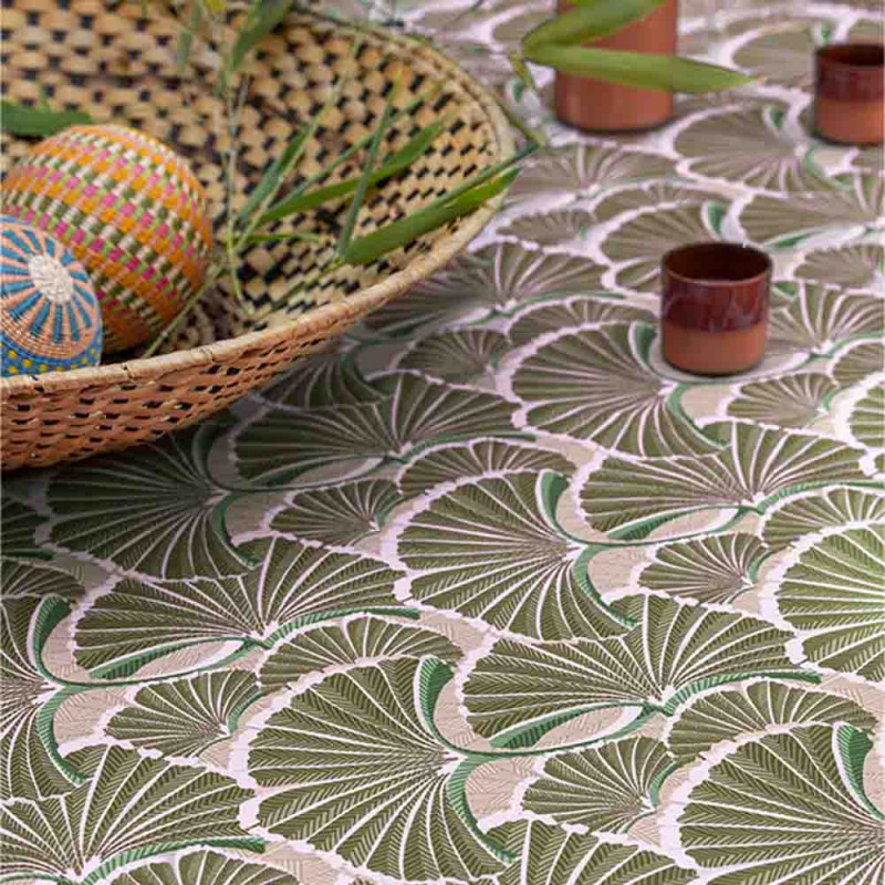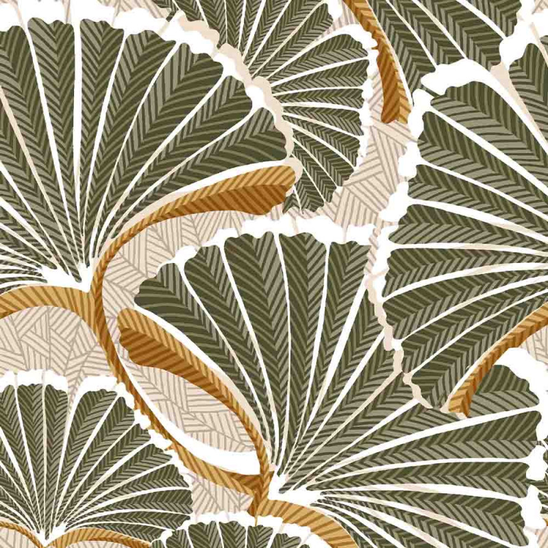 Tissu extérieur déperlant imprimé palme kaki 150 cm