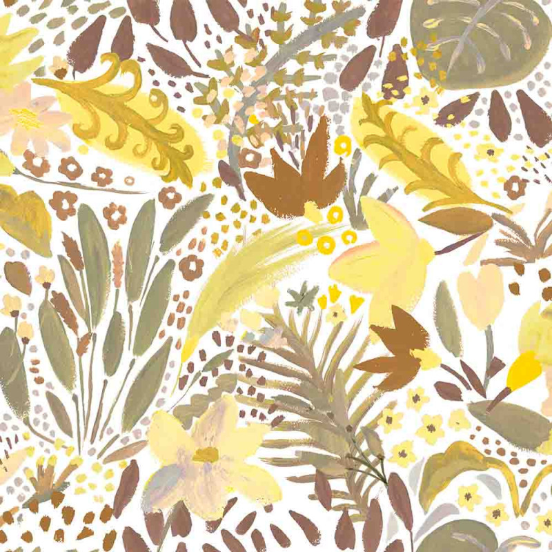 Les motifs floraux multicolores sur fond jaune végétal offrent une touche à la fois élégante et joyeuse à votre intérieur. Idéal pour une décoration naturelle et tendance !