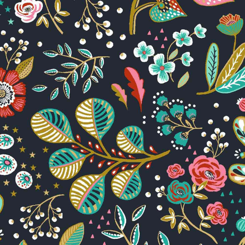 Tissu enduit motif floral gris ardoise 160 cm