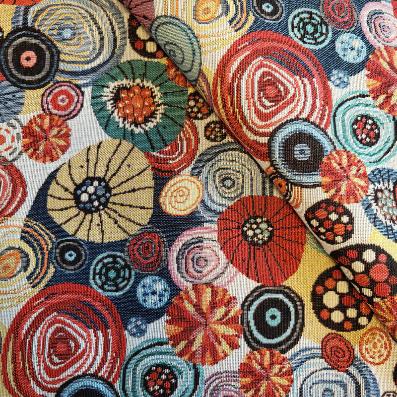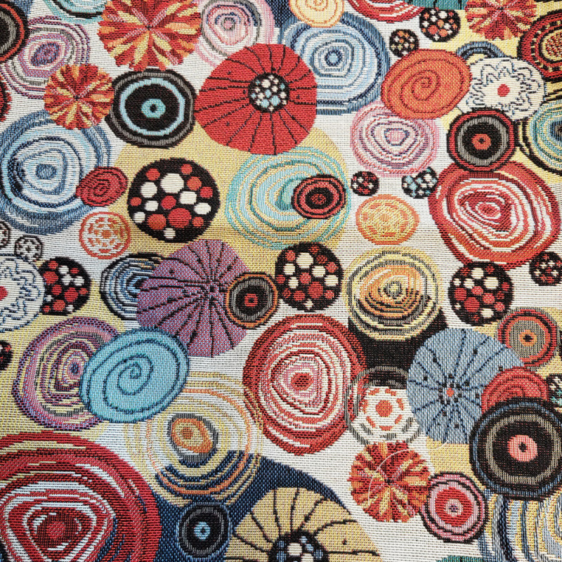 Tissu jacquard gobelin à formes ovales multicolores – Largeur 140 cm