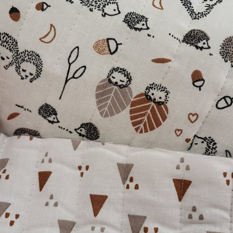 Tissu matelassé bi-face 100% coton imprimé hérisson marron 140 cm
