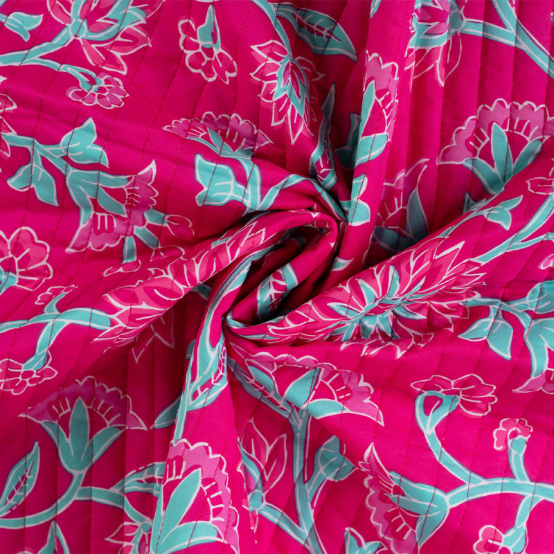 Tissu matelassé double face voile de coton floral rayé fushia 135 cm