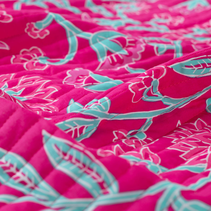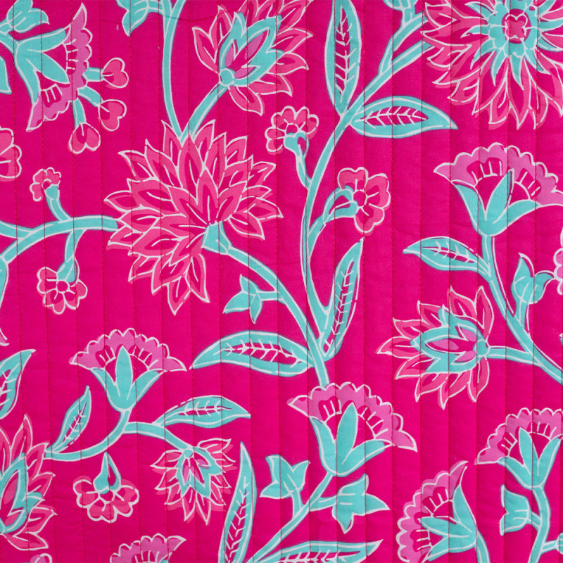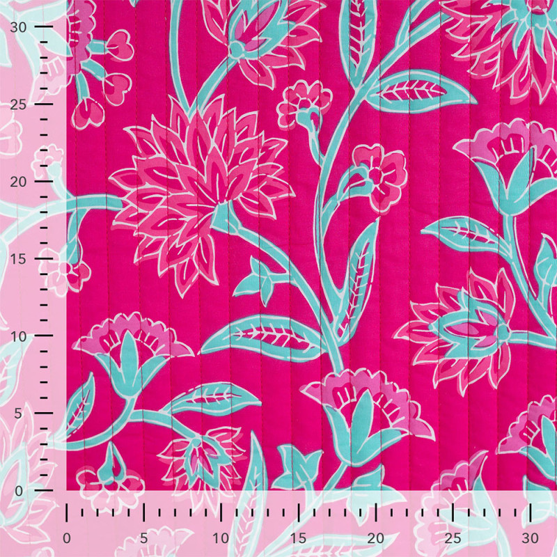 Tissu matelassé double face voile de coton floral rayé fuchsia – Largeur 135 cm