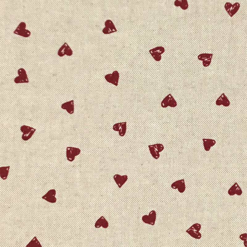Tissu effet lin imprimé petit cœur rouge 140 cm