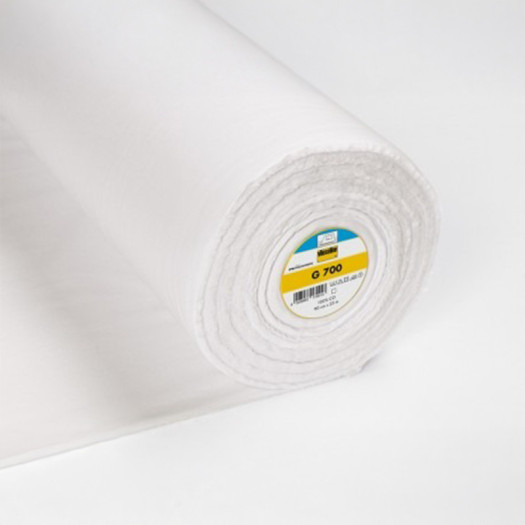 Toile Thermocollante tissée en coton G700 blanc, largeur 90 cm, idéale pour l’entoilage de petites pièces sur des tissus légers à moyens. Elle ne se déforme pas et est lavable jusqu’à 60 °C, un vrai coup de cœur des couturières ! Conseils d’utilisation : couper en suivant le sens du fil, placer le côté enduit contre l’envers du tissu, couvrir d’une toile humide et repasser par à-coups pendant 12 secondes sans faire glisser le fer, puis laisser refroidir à plat pendant 30 minutes.