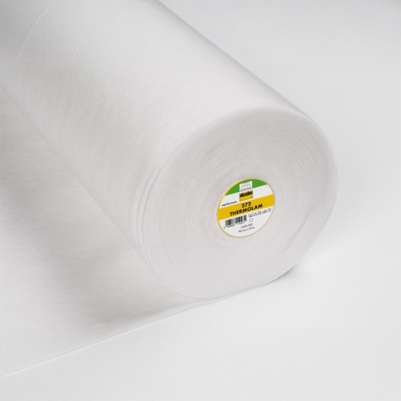 Toile thermolam molleton Vlieseline blanche de 90 cm de large, idéale comme support de repassage pour les tissus délicats tels que ceux ornés de perles ou de paillettes. Elle offre une bonne isolation thermique, protège du chaud et du froid, et convient parfaitement pour la réalisation de dessous de plat (en double), housses, patchwork ou quilts.