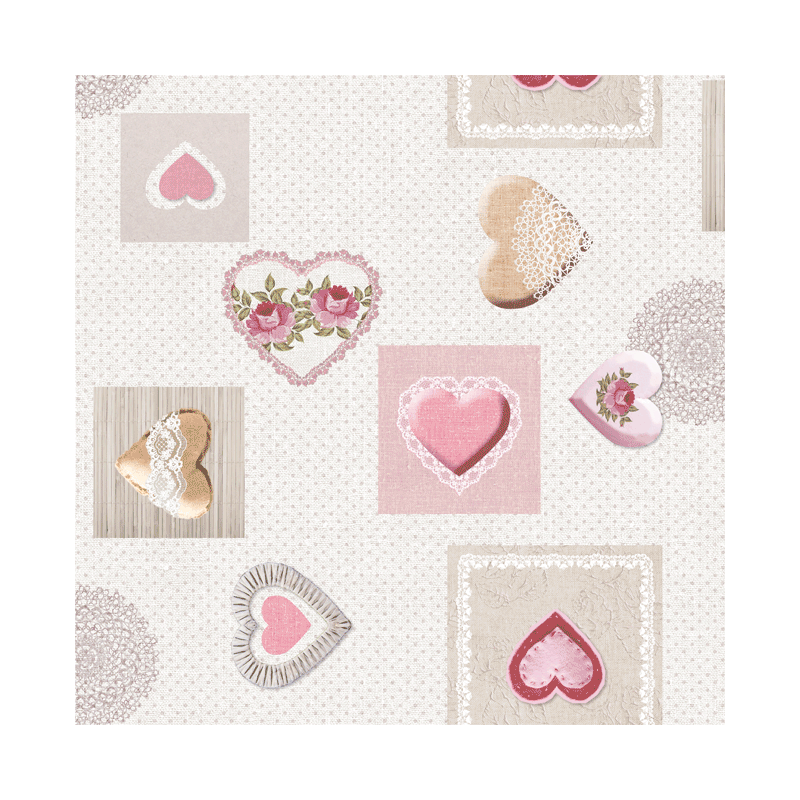 Toile cirée 140 cm effet romantique. Idéal pour décorer et protéger les tables en intérieur comme en extérieur.
