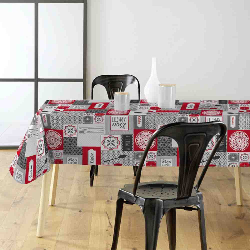 Toile cirée imprimé bistrot gris et rouge 140 cm