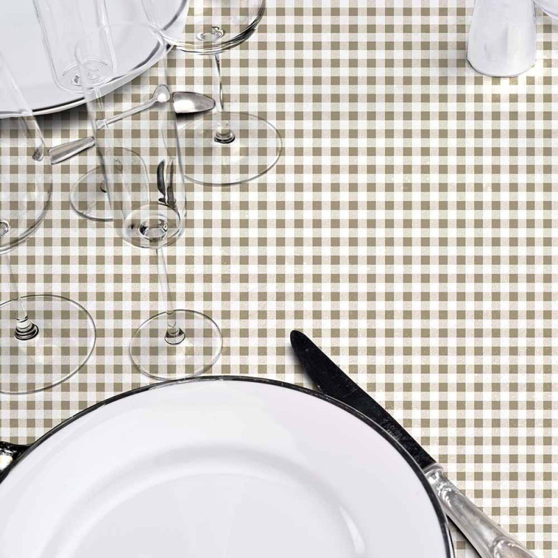 Toile cirée imprimé petit vichy beige 140 cm