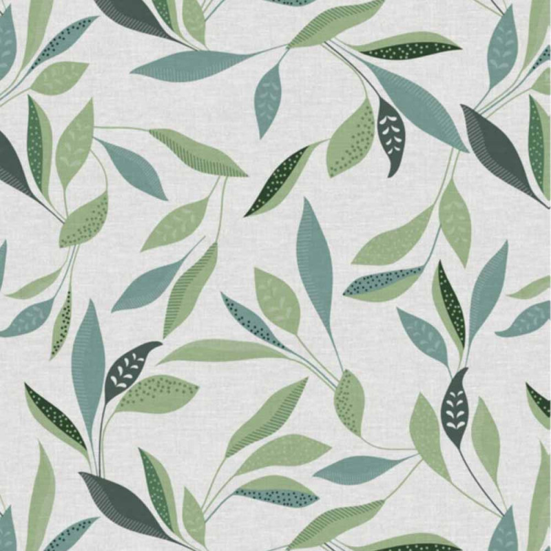 Toile cirée feuillage vert sur fond écru 140 cm