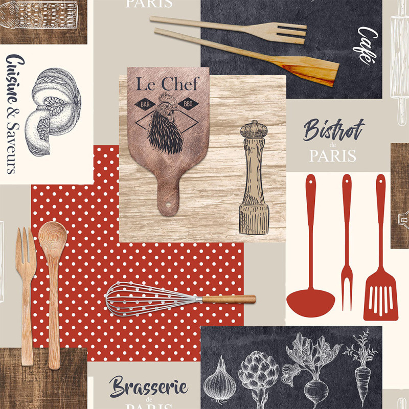 Toile cirée imprimé cuisine rouge et gris, parfaite donner à votre cuisine un style convivial. Sa largeur de 140 cm...