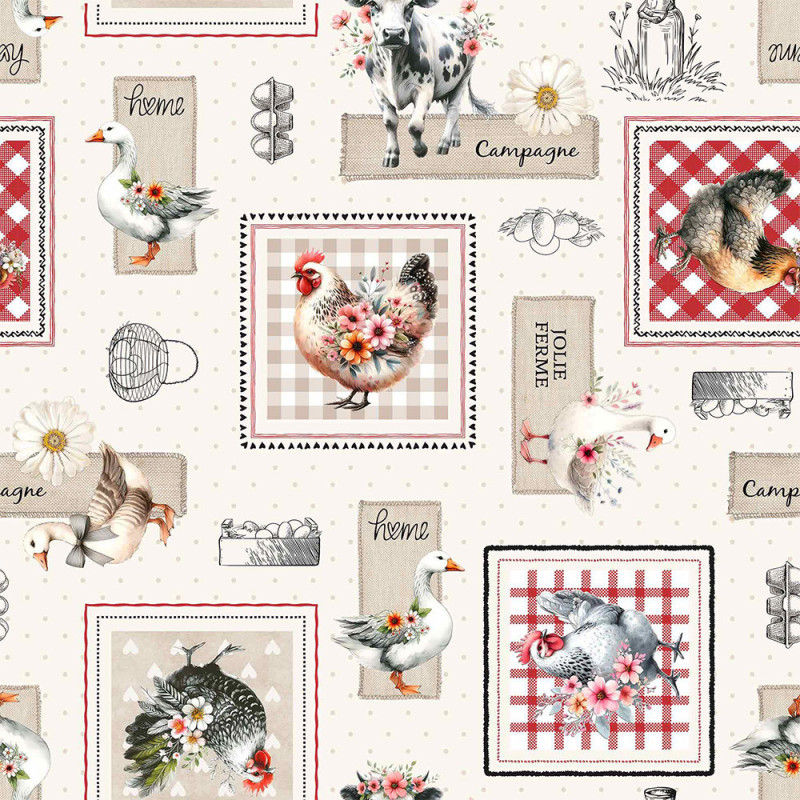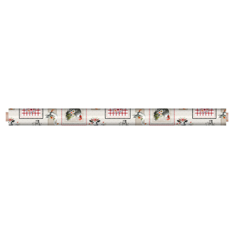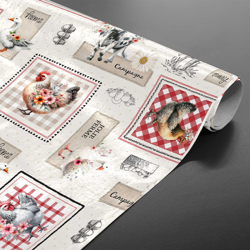 Toile cirée imprimé campagne rouge et gris 140 cm