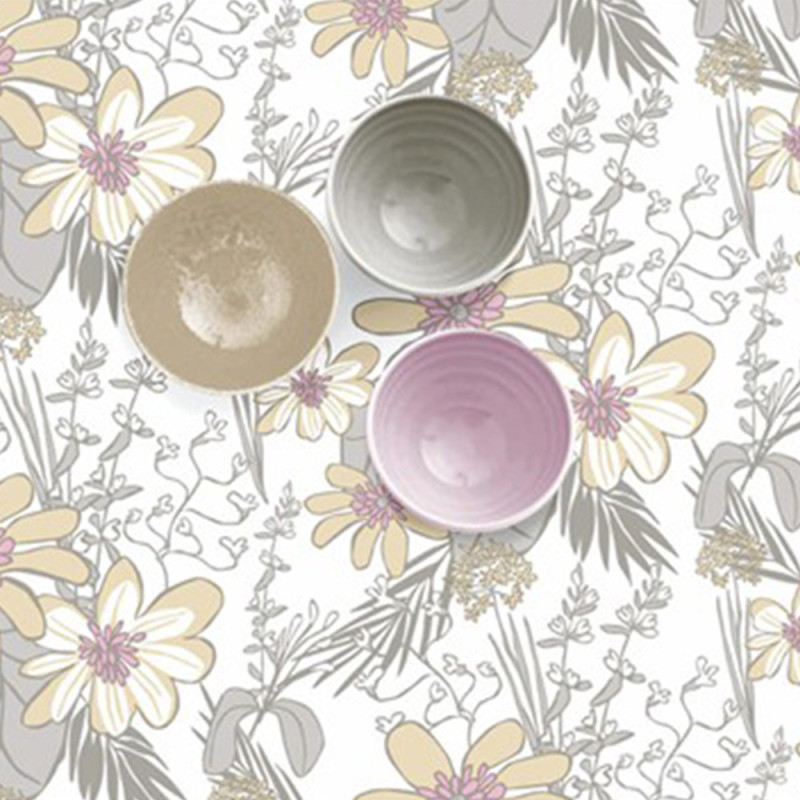 Toile cirée 1er prix petite fleur multicolore sur fond blanc 140 cm