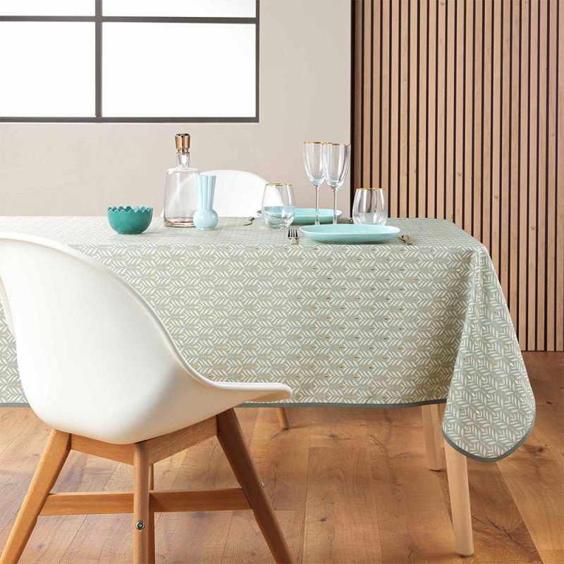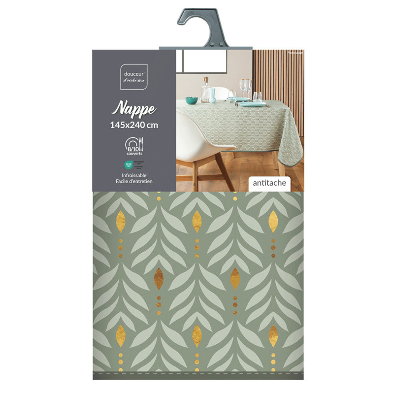 Nappe imprimé feuillage or et vert sauge 145x240 cm