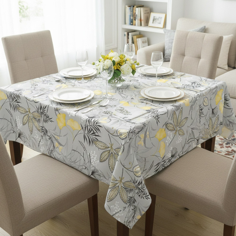 Apportez une ambiance douce et lumineuse à votre table avec la nappe toile cirée Sérénité. Son fond gris élégant est sublimé par un motif floral aux nuances de beige, gris et jaune, idéal pour une décoration à la fois moderne et chaleureuse.