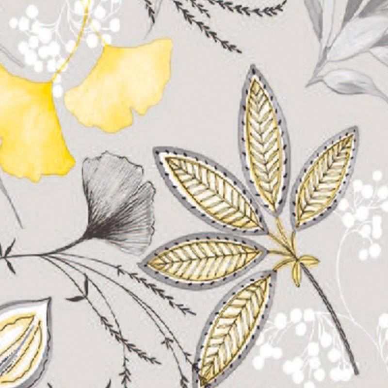 Nappe toile cirée Sérénite gris jaune à motif floral – Largeur 140 cm