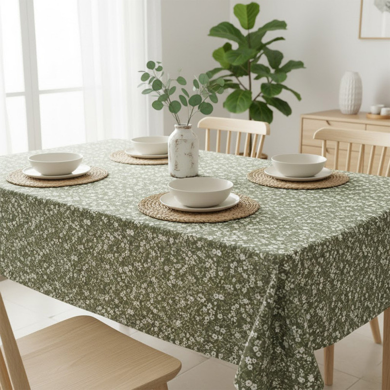 Nappe toile cirée ISA vert à petites fleurs blanches – Largeur 140 cm