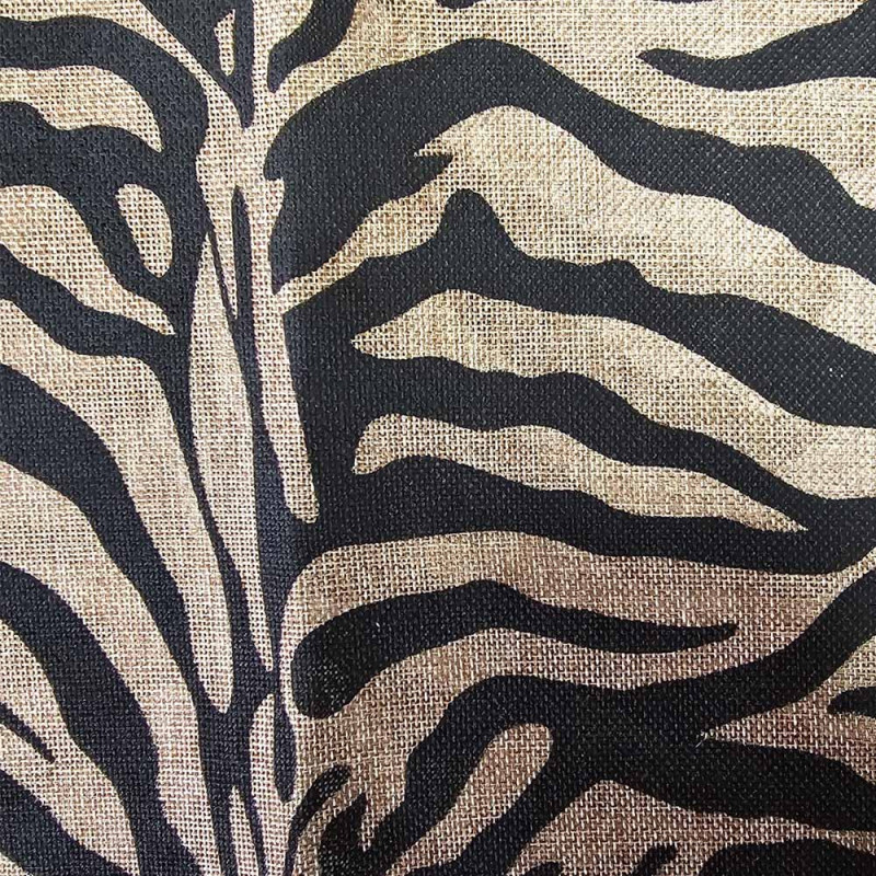 Tissu toile effet jute imprimé zèbre lin et noir, parfait pour des créations DIY originales et modernes. Sa largeur de 150 cm offre un beau rendu pour concevoir des accessoires de déco, pochettes, ou projets au style naturel et sauvage. Son aspect jute texturé apporte du caractère et reste souple à travailler, idéal pour des réalisations personnalisées !