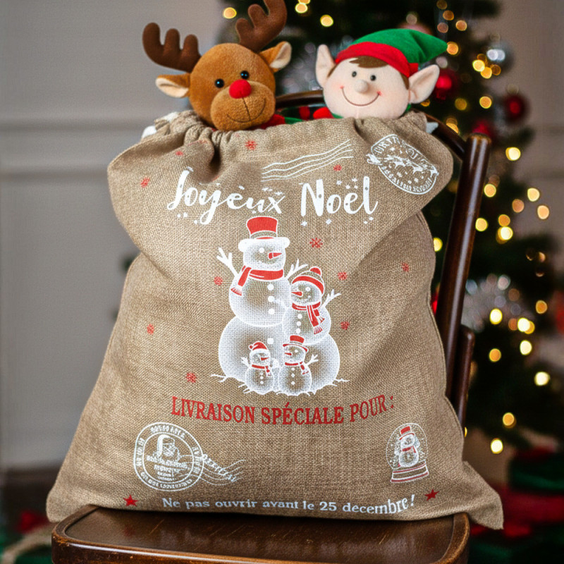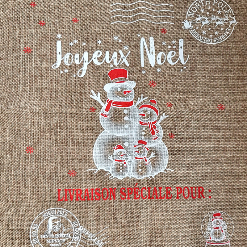Toile effet jute imprimé sac cadeaux Bonhomme de neige...