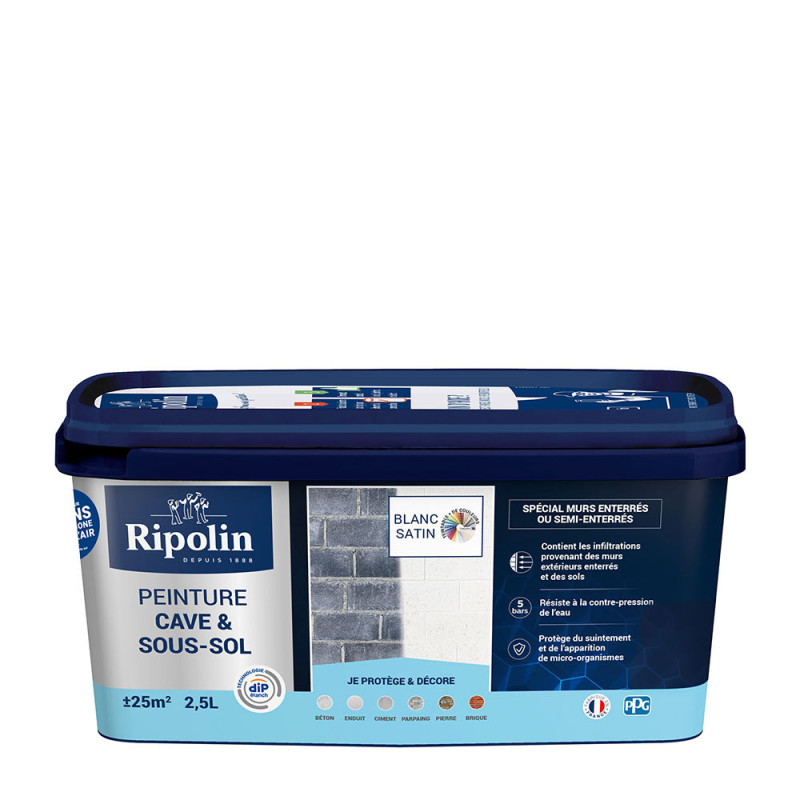 Issue de la technologie DIP étanch, cette peinture spéciale cave et sous-sol en 2.5L a été spécialement élaborée pour imperméabiliser, protéger et décorer vos murs enterrés ou semi-enterrés. Elle contient les infiltrations d’eau provenant des murs extérieurs enterrés et des sols et résiste à la contre-pression de l’eau (jusqu’à 5 bars). Elle sauvegardera également vos murs du suintement et de l’apparition de micro-organismes. Microporeuse (laissant respirer le support) et lessivable, elle protègera et décorera vos supports pour longtemps. Elle est disponible en blanc satin et peut-être également teintable en machine uniquement en teinte claire pastel.