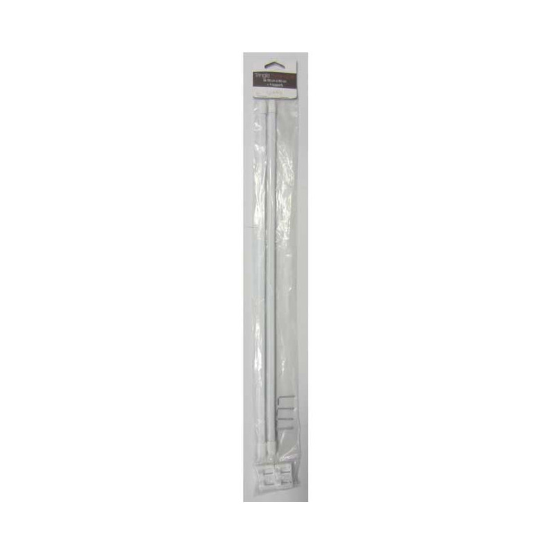 Tringle extensible blanche de 50 à 80 cm avec 4 supports.