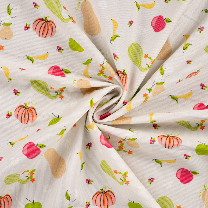 Apportez une touche ludique et pleine de fraîcheur à vos projets créatifs avec ce tissu velours milleraies imprimé légumes du potager multicolore, en 140 cm de large. Avec ses motifs gourmands et colorés représentant des petits légumes du jardin, ce tissu est parfait pour des créations DIY originales et pleines de vie. Idéal pour la confection d’accessoires de cuisine, de sacs, de coussins décoratifs ou encore de vêtements enfants, il allie douceur, résistance et fantaisie. Sa texture côtelée caractéristique du milleraies apporte relief et charme à toutes vos réalisations couture ou déco.
