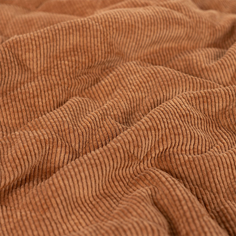 Tissu velours côtelé et fausse fourrure rembourré de ouate camel 145 cm