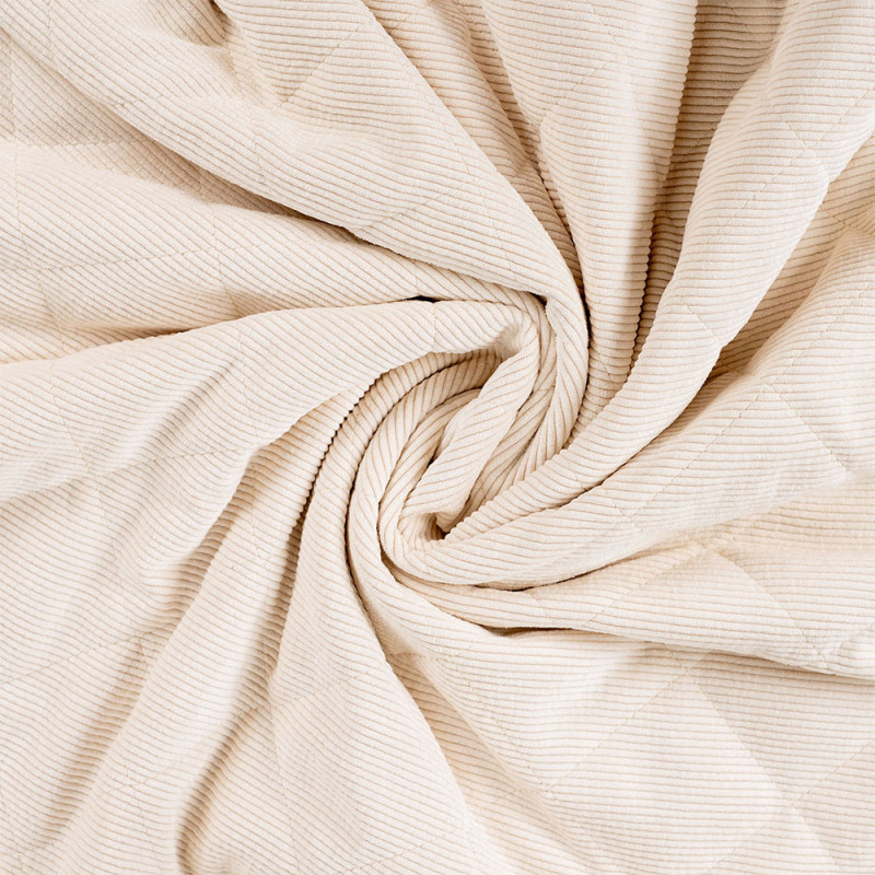 Tissu velours côtelé et fausse fourrure rembourré de ouate beige 145 cm