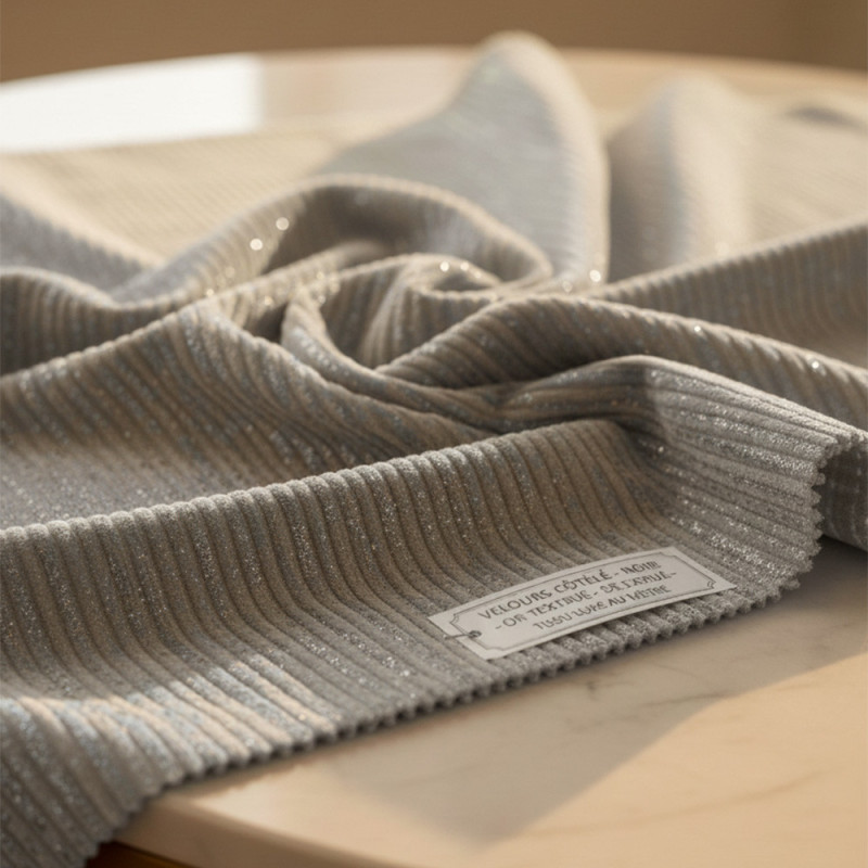 Tissu velours côtelé 5mm lurex gris argenté 140 cm
