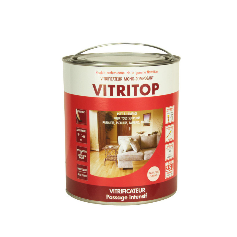 Ce vitrificateur offre une protection élevée tout en embellissant les bois intérieurs. Résistant à l'humidité, aux rayures et aux chocs il s'applique sur tout type de support bois, lambris, meubles...