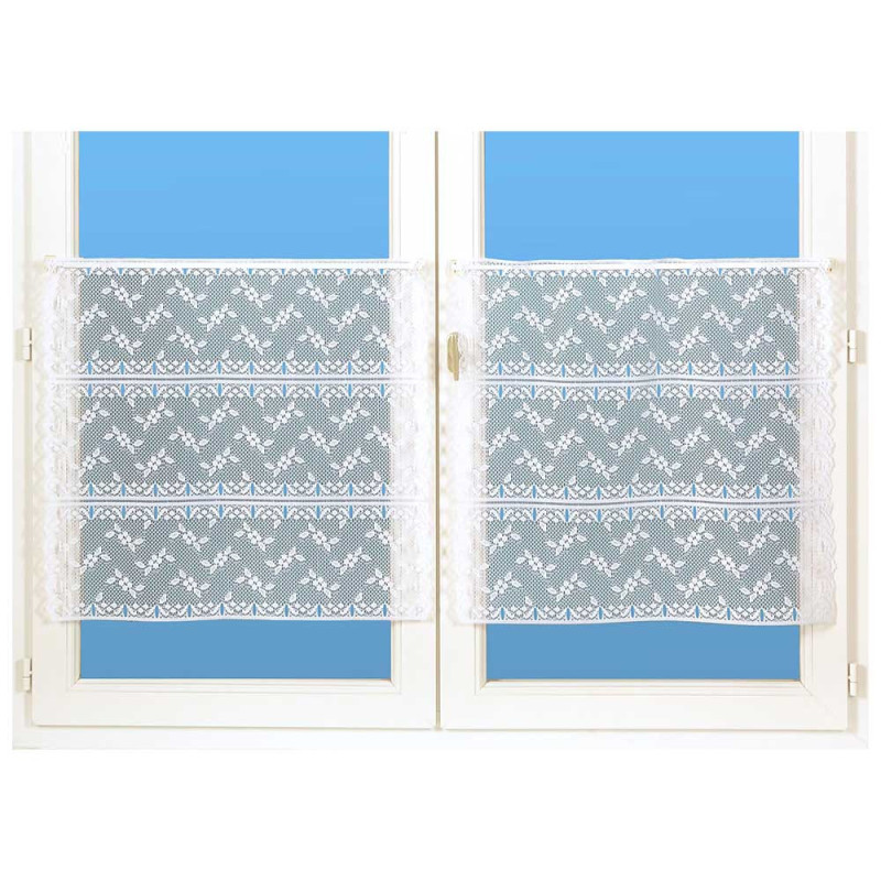 Modulable en maille couleur blanc brodé motif floral. Il filtrera agréablement la lumière dans votre pièce. Hauteur 75 cm.