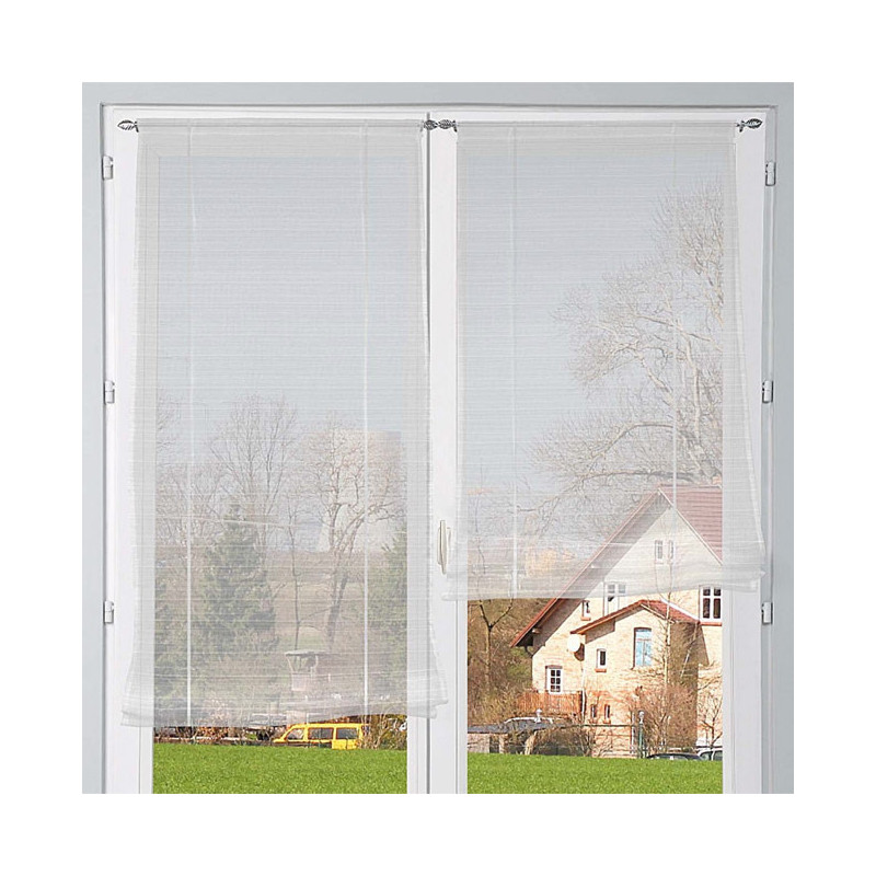 Paire de vitrage remontable fines rayures blanc 45 x 160 cm