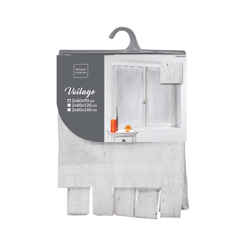 Ajoutez une touche élégante et lumineuse à votre intérieur avec cette paire de voilages à fil blanc, dimensions 60x90 cm. Grâce à leurs passants intégrés, ces voilages s’installent facilement sur tout type de tringle, offrant une solution pratique et rapide pour habiller vos fenêtres. Leur design épuré s’harmonise parfaitement avec différents styles de décoration, qu’ils soient modernes, classiques ou minimalistes. Faciles à entretenir, ces voilages sont conçus pour simplifier votre quotidien tout en embellissant votre espace. Idéal pour laisser passer la lumière tout en préservant l’intimité, ce voilage est l’alliance parfaite entre fonctionnalité et esthétique.