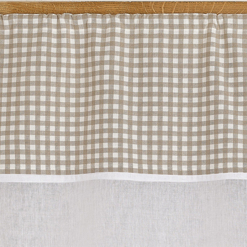 Brise-bise voilage blanc motif vichy beige – 60 x 120 cm