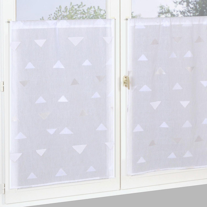 Paire de vitrage droit étamine blanc fil coupé motif triangle 60 x 120 cm
