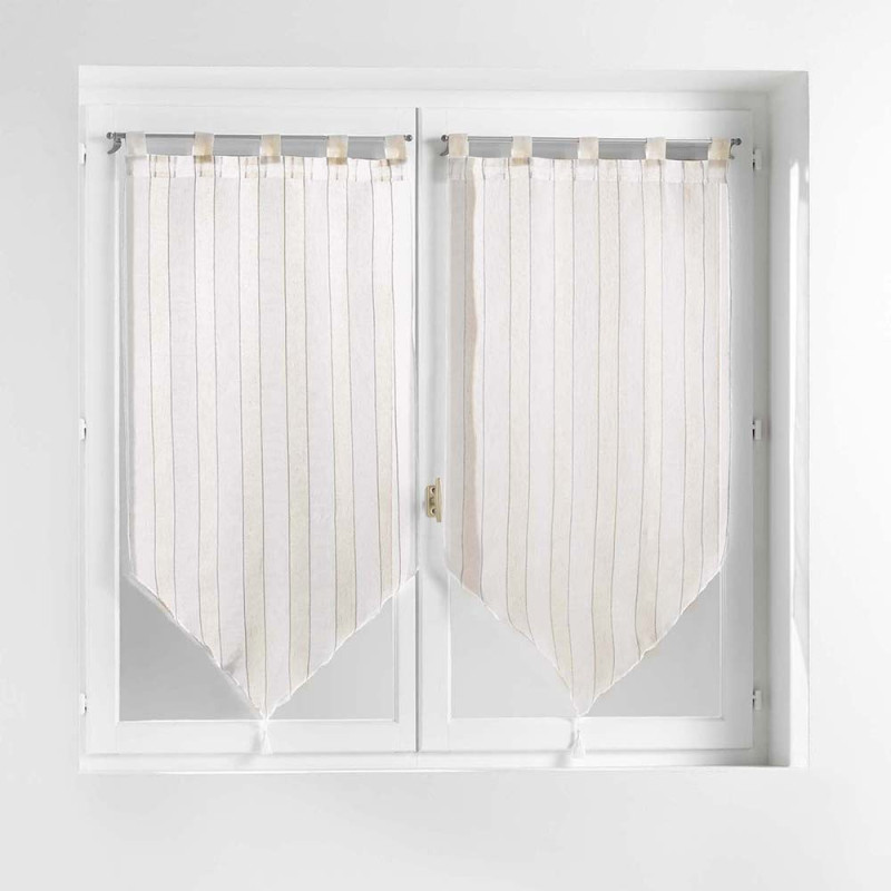 Vitrage voile à rayures 60x120cm écru. Idéal pour tamiser la lumière entrente. La tête du brise bise sont des passants à pattes.