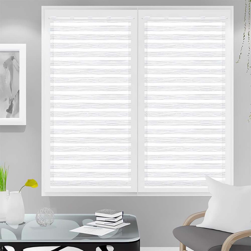 Paire de vitrage à rayures 60x160cm blanc. Idéal pour tamiser la lumière entrente
