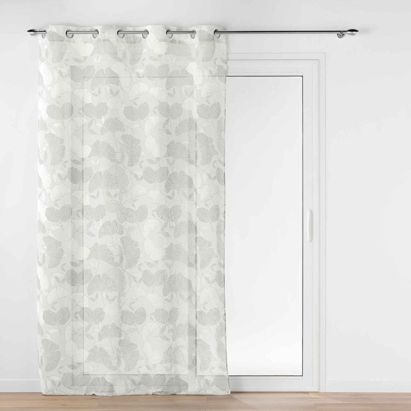 Rideau voilage imprimé ginko effet lin blanc 140 x 240 cm