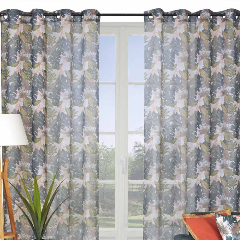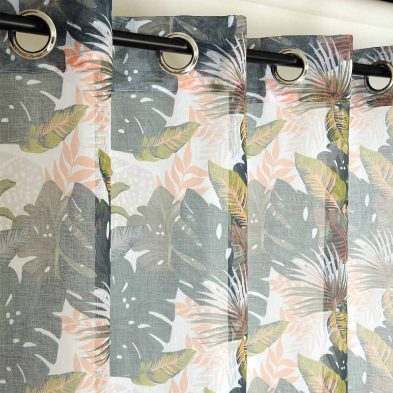 Transformez votre espace en une oasis tropicale avec notre ravissant rideau voilage en étamine, orné d'un motif tropical aux couleurs vives et exotiques.