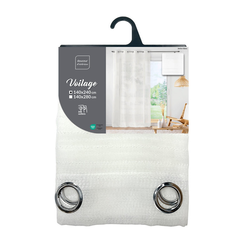 Rideau voilage étamine effet lin blanc 140x240 cm