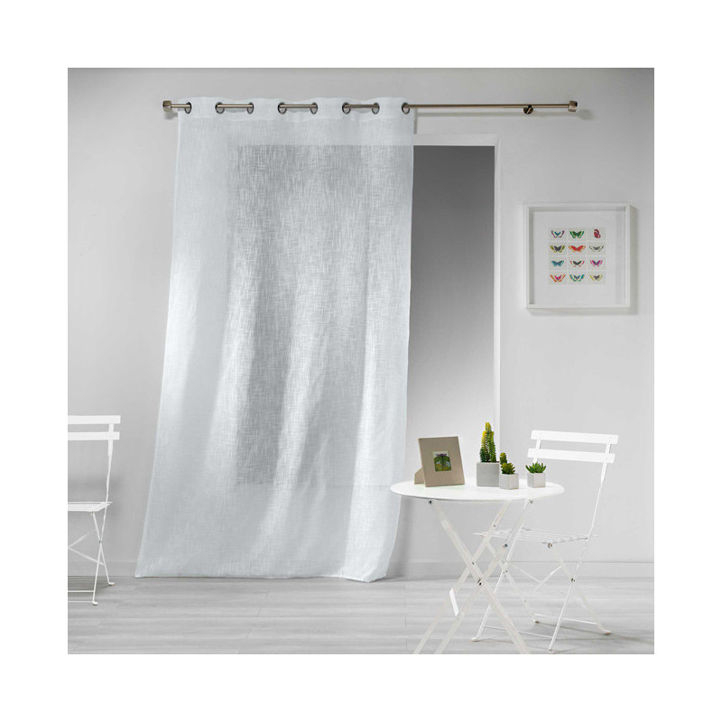 Rideau voile blanc grande hauteur effet lin tissé
