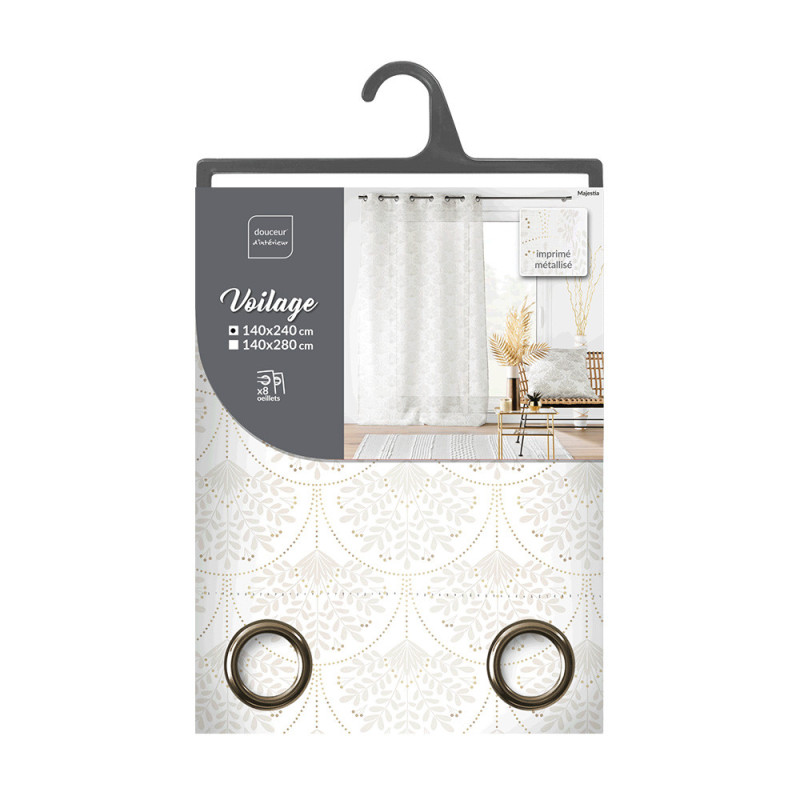 Rideau voilage naturel et or 140x240 cm, parfait pour apporter une touche élégante et sophistiquée à votre intérieur. Le mélange subtil de teintes naturelles et d’accents dorés crée une ambiance lumineuse et raffinée sans être trop imposant. Ce voilage laisse passer la lumière tout en préservant votre intimité, créant ainsi une atmosphère chaleureuse et accueillante. Avec des dimensions de 140x240 cm, il convient aux fenêtres de taille moyenne et s’installe facilement grâce à ses œillets. Ce rideau s’intègre harmonieusement dans des décors modernes, scandinaves ou classiques, apportant une touche de glamour discrète à votre salon, chambre ou bureau.